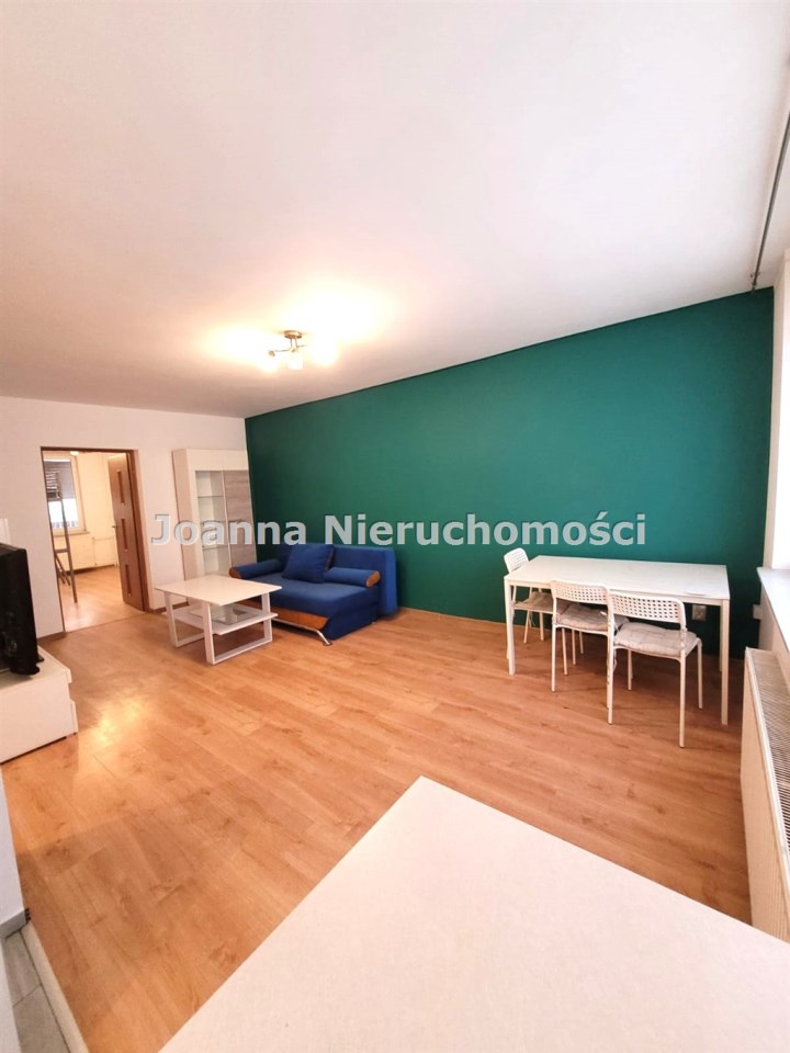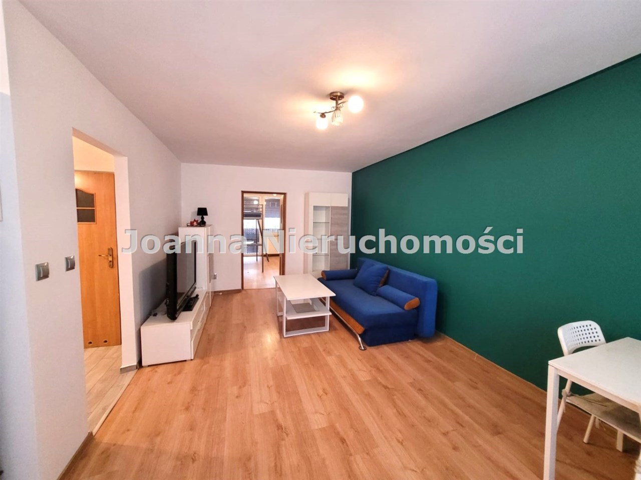 Układ: dwa ustawne, przechodnie pokoje z czego mniejszy posiada balkon a salon połączony jest z aneksem kuchennym oraz łazienka, przedpokój. Do mieszkania przynależy piwnica.